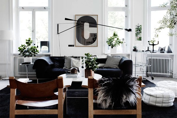 J’aime toujours autant le mélange du noir et du blanc! Sur les blogues scandinaves, ce style est très très présent… Cependant je dois bien avouer que je n’aménagerais pas mon propre espace ainsi… mais j’adore ces intérieurs bien découpés et lumineux.