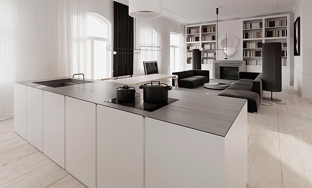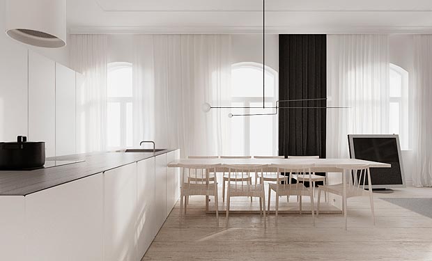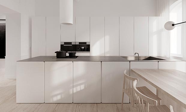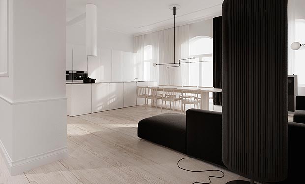 Lorsque je le regarde, je retrouve plusieurs des éléments qui font qu’un espace me plaît. Premièrement, il y règne une certaine douceur. Rien n’accroche le regard mais rien ne le stress non plus, il est sobre et tout en symétrie. Bien sûr, l’architecture est imposante, j’irais même à la qualifier de grandiose. Mais la sélection des matériaux fait en sorte qu’il se dégage de cet intérieur un aspect enveloppant malgré tout. Et les textures sont tout aussi élégantes que caressantes…