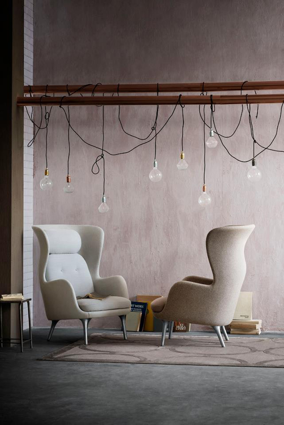 En lien avec l’article sur l’atelier de Tom Dixon et ses créations, voilà deux photographies qui illustrent bien ce qui me faisait envie! La série de luminaires Beat Light mais en blanc, au dessus de l’îlot. Elles sont tout aussi magnifiques, avouez! Je dirais par contre qu’elles font plus modernes tandis que les mêmes en noires nous ramène à un look plus industriel. Et sur la photo suivante, deux bergères, qui ne sont pas de Dixon celles-là, mais qui sont tout aussi actuelles et intéressantes! Et qui annonce que le confort n’est pas relégué aux oubliettes!