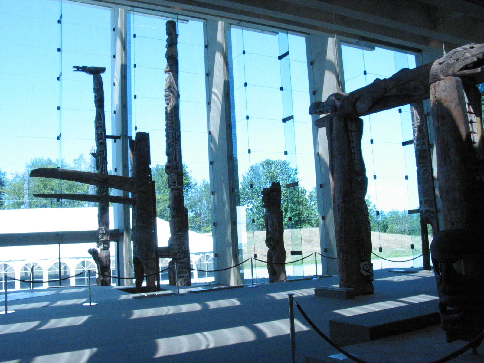 Il est intéressant de visualiser certaines réalisations en architecture qui ont repris ou qui se sont inspirées de l’architecture des peuples autochtones d’Amérique du Nord. Tel que mentionné précédemment, ce savoir-faire mérite que l’on s’en souvienne, il s’agit du patrimoine des Premières Nations de notre beau et grand territoire. J’ai sélectionné quelques photos personnelles du musée d’anthropologie de Vancouver. De superbes réalisations y sont exposées. De plus, le bâtiment est l’oeuvre de l’architecte Arthur Erickson(1924-2009). Ce grand architecte canadien s’est inspiré de la méthode de contruction traditionnelle à poteaux et à poutres des habitations autochtones de la côte Ouest…mais avec des matériaux modernes, l’effet est saisissant.
