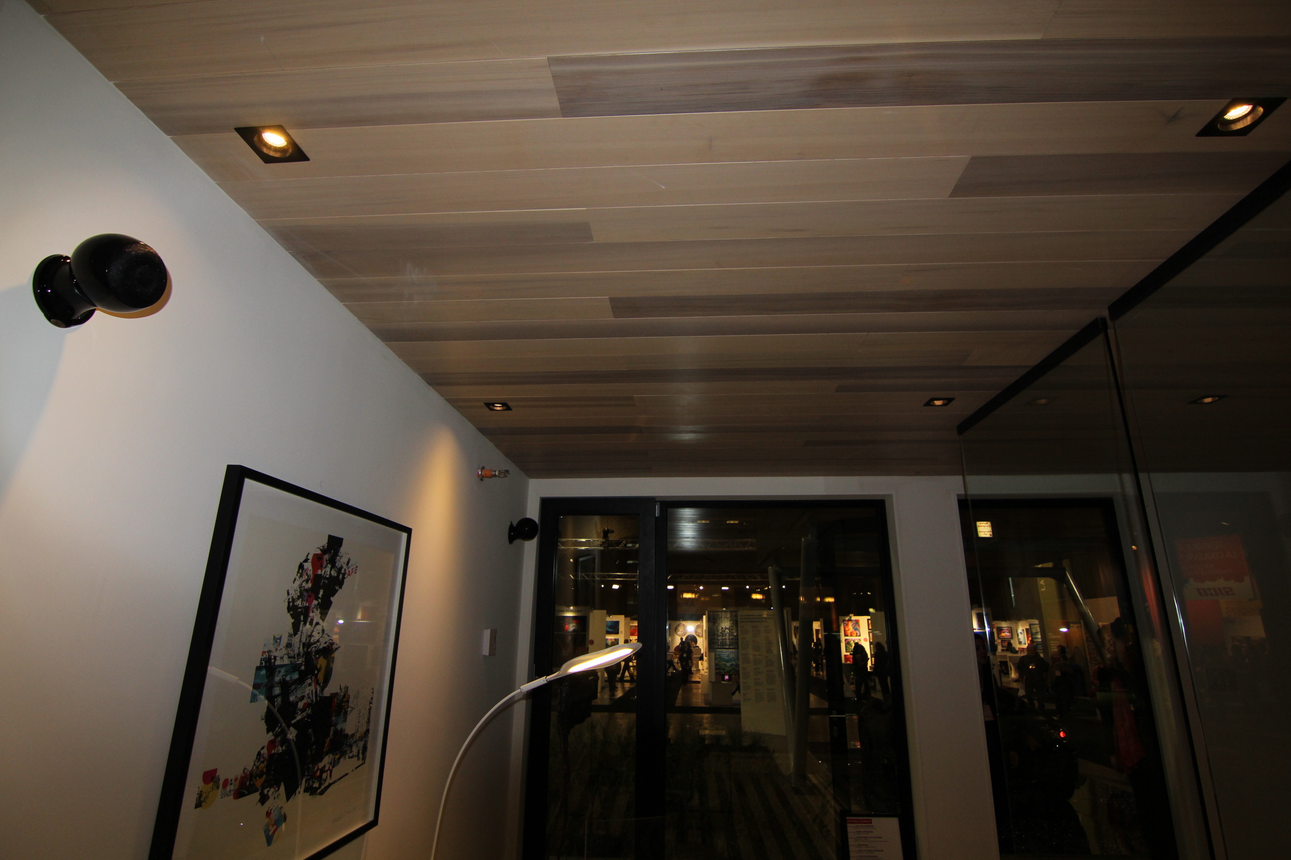 L’intérieur est sobre et blanc,  le plancher de bois est de couleur foncée mais ô surprise! le plafond aussi est en bois mais pâle celui-là! Ça rend la maison plus enveloppante.  Mais ce qui est encore plus joli, c’est le fait que les fixtures et les encastrés soient  de couleur noire.  C’est d’un chic inattendu…surprenant!
