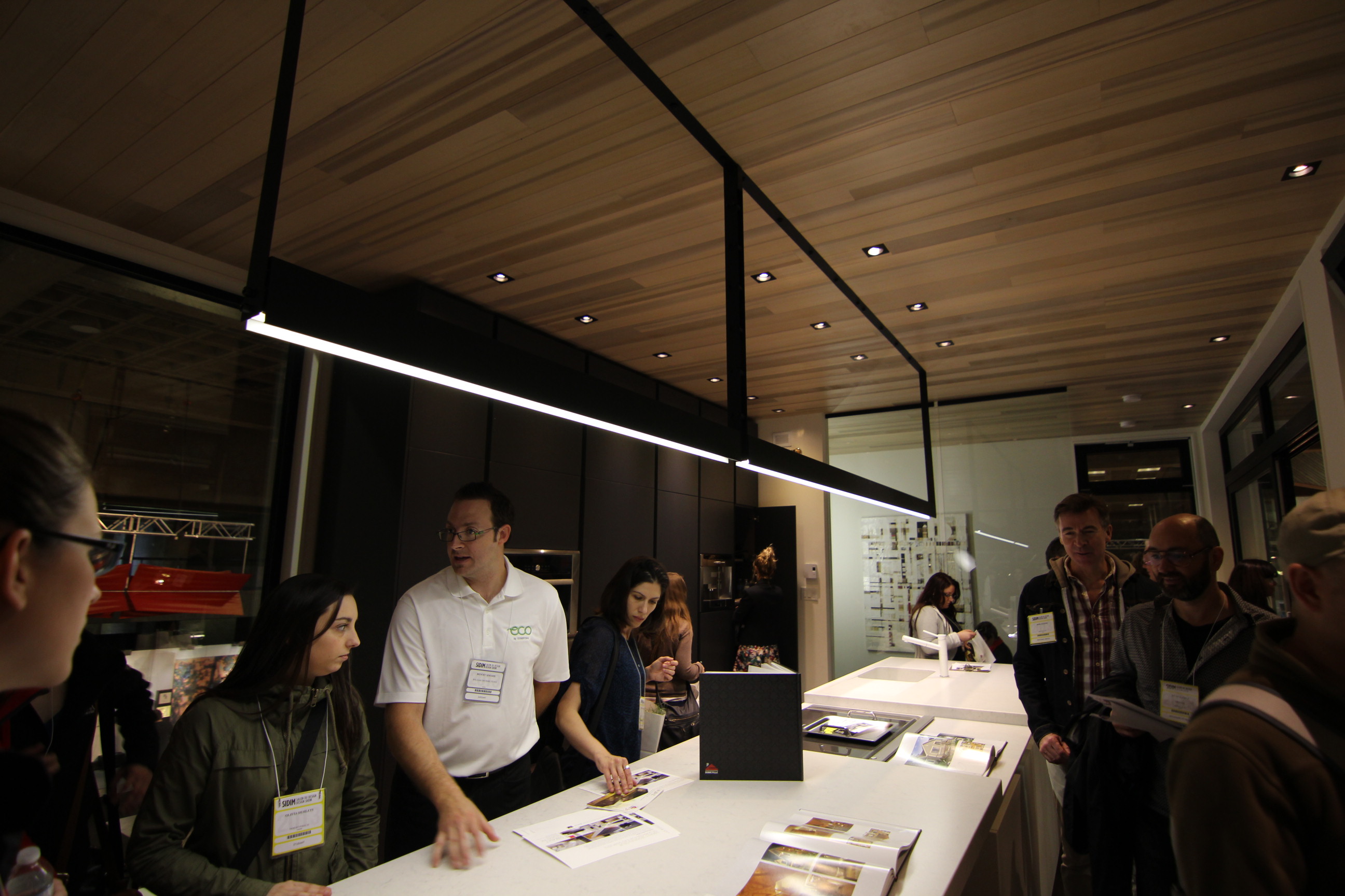 J’ai fait une visite au salon international du design de Montréal, le Sidim, vendredi le 24 mai dernier.   J’y ai pris quelques photos et aujourd’hui, ce sont celles de mon coup de coeur du salon que je vais publier.  La maison préfabriquée réalisée par Bonneville. Encore une maison noire! (j’aime!)  Quoique sur les photos, avec l’éclairage, elle semble plutôt d’un brun-noir…  Il s’agit de deux volumes rectangulaires surperposés de façon perpendiculaire; les architectes ont développé cette façon de faire depuis bon nombre d’années déjà… et les possibilités sont nombreuses, on applique cela même avec des containers maintenant, mais pour en revenir à la maison, j’ai particulièrement apprécié:
