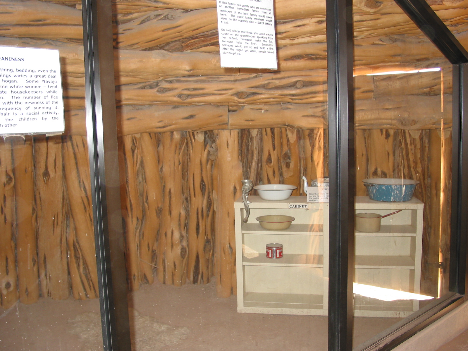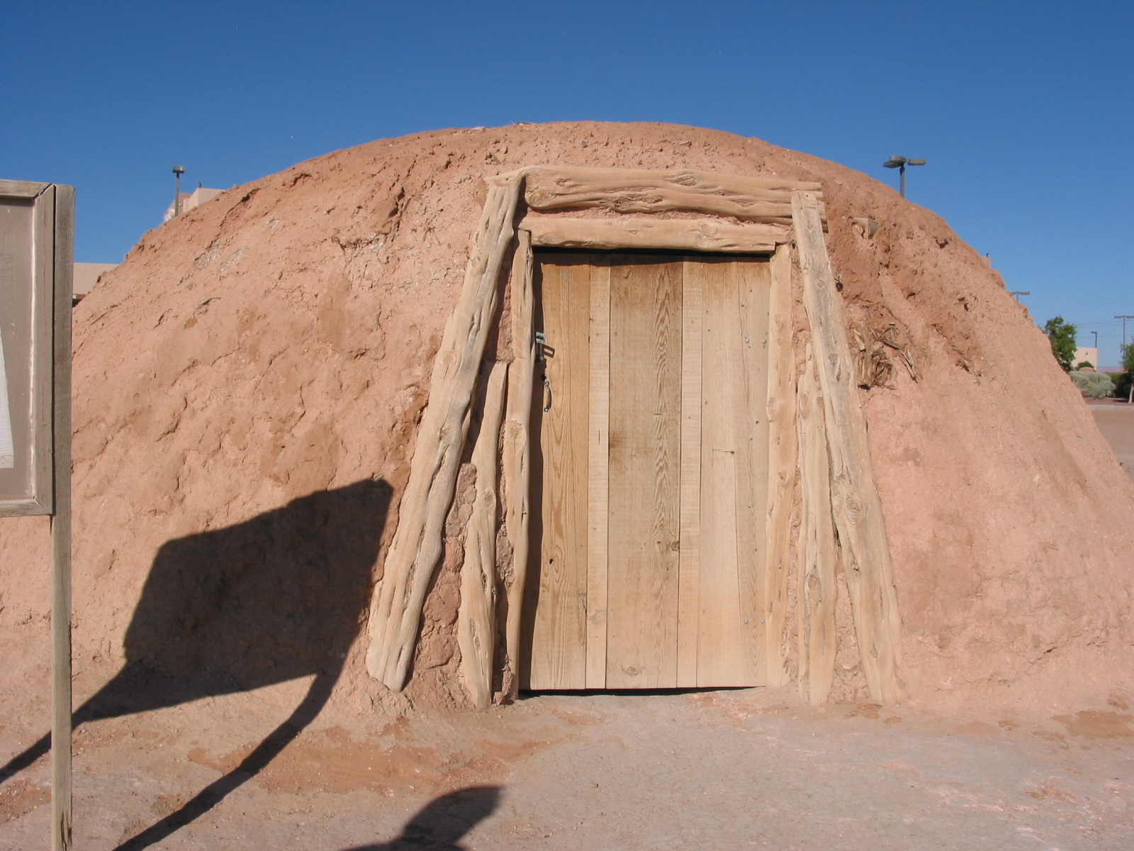 La maison traditionnelle s’est transformée fin 19ième début 20ième siècle pour s’agrandir, évoluer peu à peu vers une forme octogonale et finalement être bâtie presque uniquement de bois. Aujourd’hui, le hogan est un lieu de mémoire. Il témoigne de la représentation de l’univers selon les Navajos. Voici quelques photos: