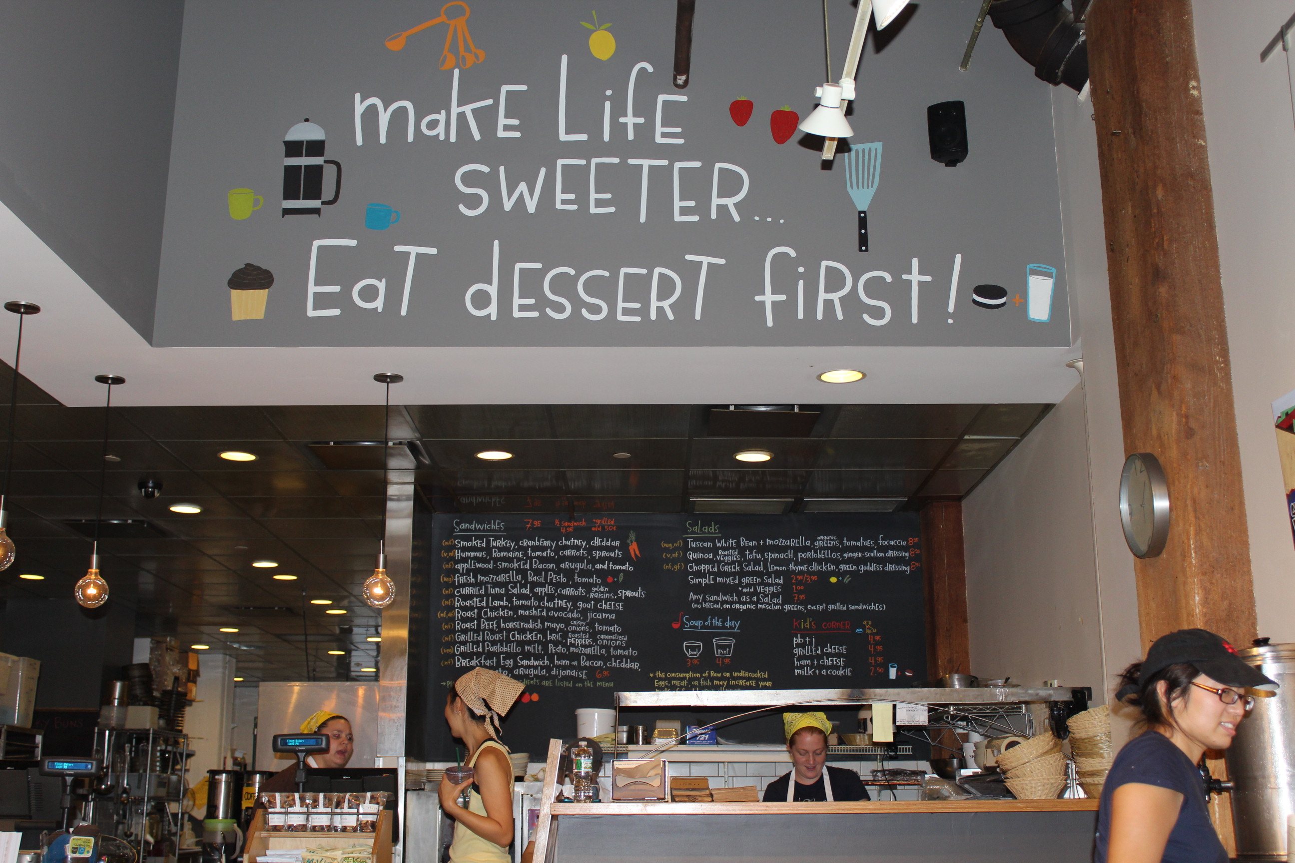 J’aime bien cette ambiance funky dans un local commercial (et même dans une résidence qui s’y prête bien) ! La déco est simple mais chouette et son message me convient tout à fait! Et vous? Commencez-vous par le dessert en premier?