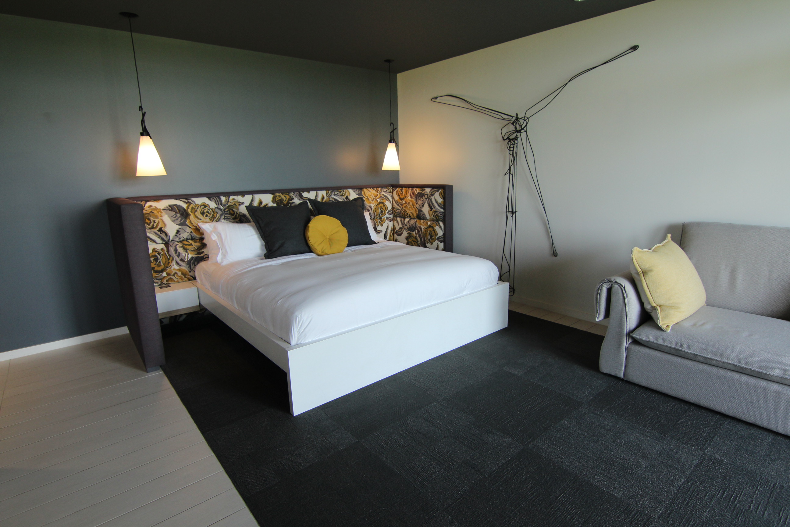 Au Québec, à Baie-St-Paul plus précisément,vous trouverez ce bâtiment, il s’agit d’un nouvel hôtel: La Ferme! Sur un site magnifique, un peu sauvage, en plein coeur de la baie, se tient ce complexe hôtelier étonnant de modernité! Quelle belle idée! Enfin, de la diversité en région! (Je n’en peux plus de louer des chambres figées dans le temps dont le décor nous ramène 30 ans en arrière!)