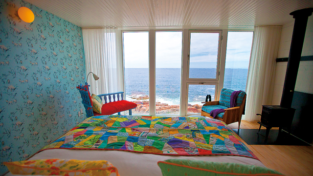 C’est sur l’ïle rocheuse de Fogo, que les photos de ce mariage inusité ont été prises. L’effet de la courtepointe dans une chambre à l’architecture épurée est particulière.  J’en ai profité pour vous glisser quelques photos de ce bâtiment étonnant, un hôtel magnifique en fait, perdu au large de Terre-Neuve… Pas surprenant que la courtepointe y soit encore au goût du jour dans un climat semblable, n’empêche! pour moi, la courtepointe évoquera toujours le souvenir de ma grand-mère Irène et de ses magnifiques réalisations…que plus personne dans la famille ne peut créer en 2013!