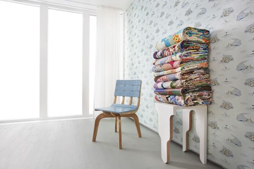 Un mix étonnant direz-vous?  On croyait la courtepointe réservée aux vieilles maisons campagnardes? Pas du tout! On en voit de plus en plus dans des intérieurs d’architectures ultra contemporaines. Quel beau mariage que celui issu du savoir-faire traditionnel féminin à celui résolument technique et moderne de l’architecture épurée XXIième siècle.