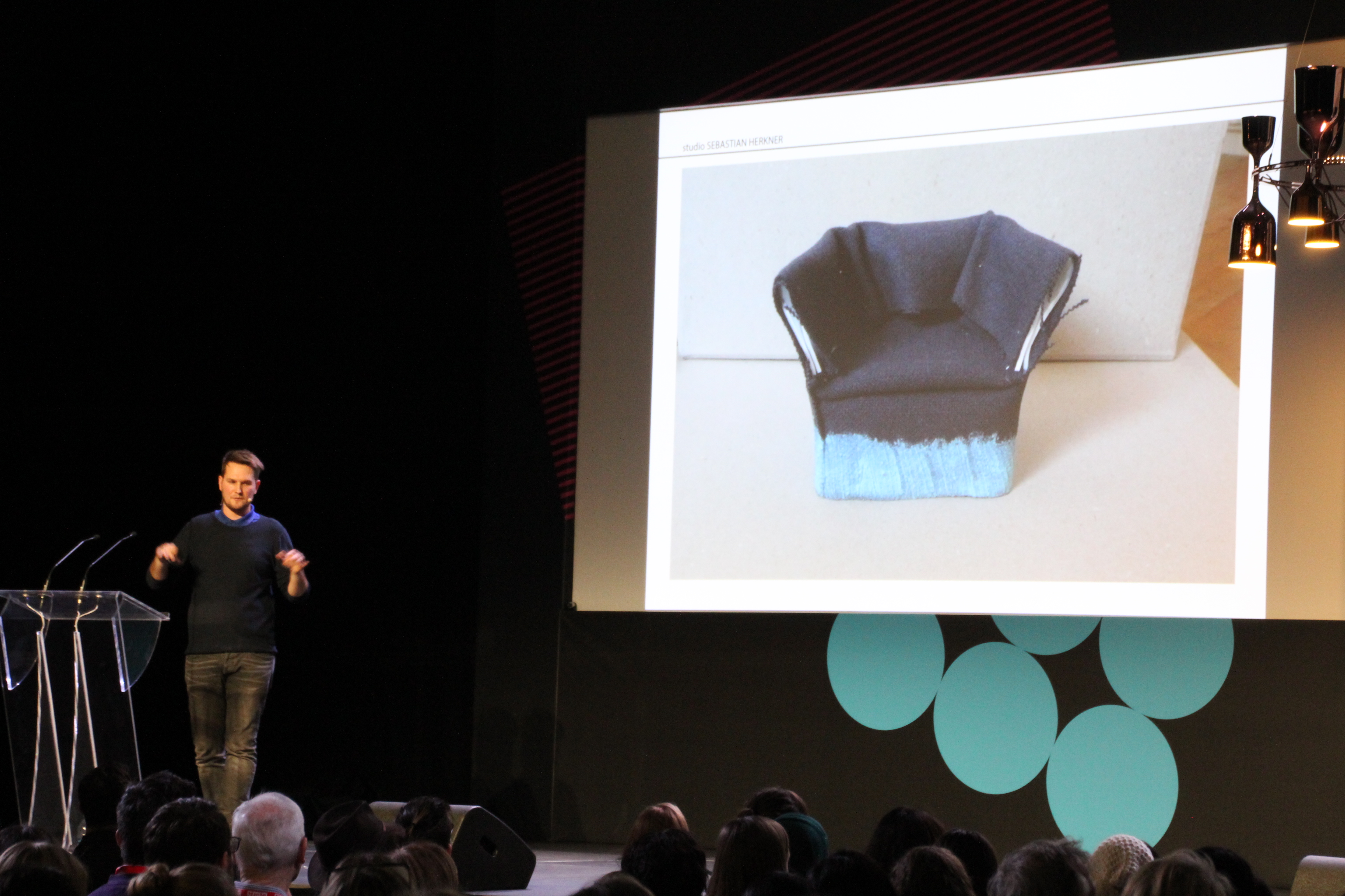 Mon coup de cœur cette année à l’IDS fut sans contredit Sébastian Herkner, jeune designer allemand dont les créations débordent d’originalité comme en témoigne ces photos ! Cette chaise est, à mon avis, tout simplement remarquable d’inventivité tout en étant confortable! Et magnifique! Les matériaux sont impressionnants et probablement assez complexes à assembler…